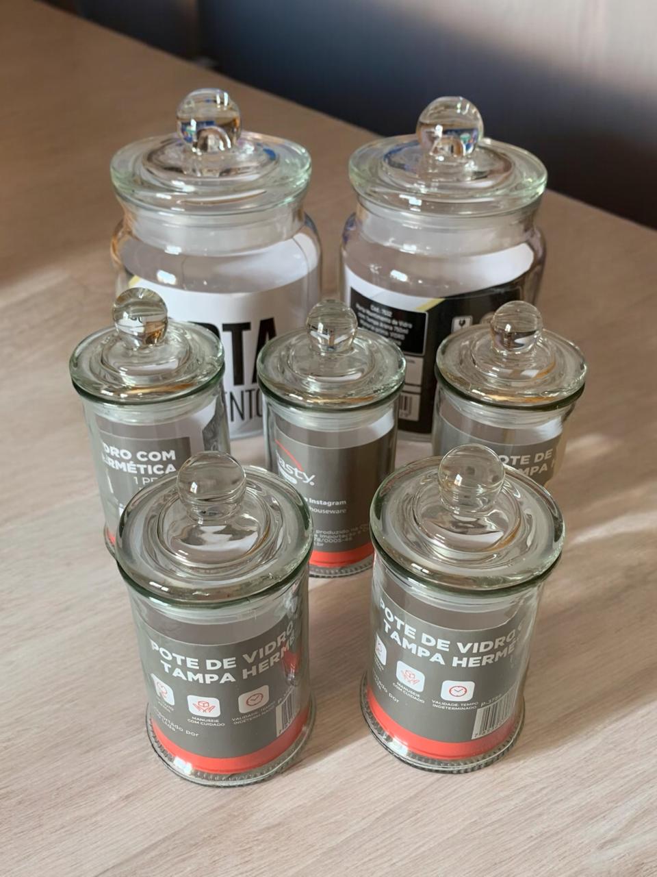 Kit pote vidro hermético com Tampa com 5 potes de 120 ml - 2 potes de 750 ml